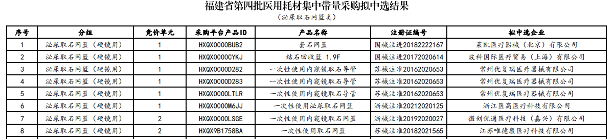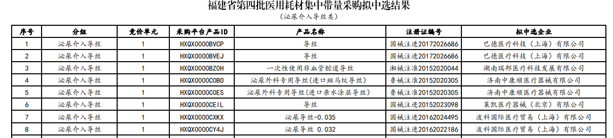 根據(jù)此前發(fā)布的《福建省第四批醫(yī)用耗材集中帶量采購文件(征求意見稿)》,本次集采將圍繞輸液器、泌尿取石網(wǎng)籃、泌尿介入導(dǎo)絲、輸尿管支架等4類醫(yī)用耗材進行開展。