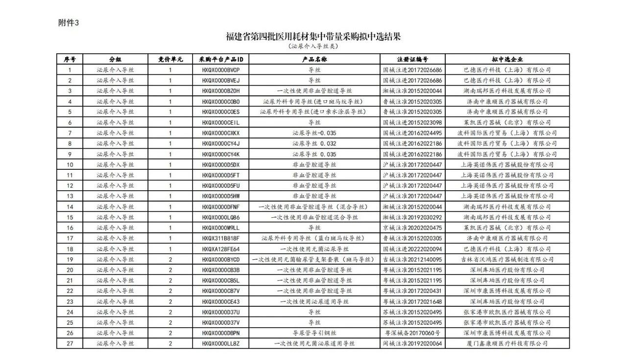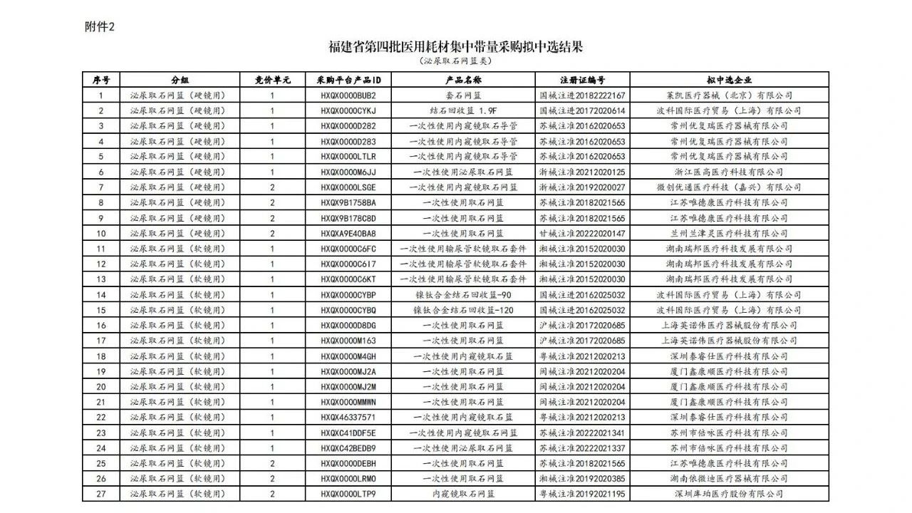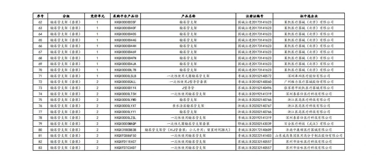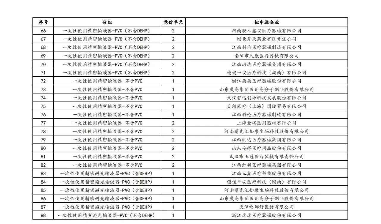 最新公告披露了上述耗材的擬中選結(jié)果,部分名單如下(完整見文末):