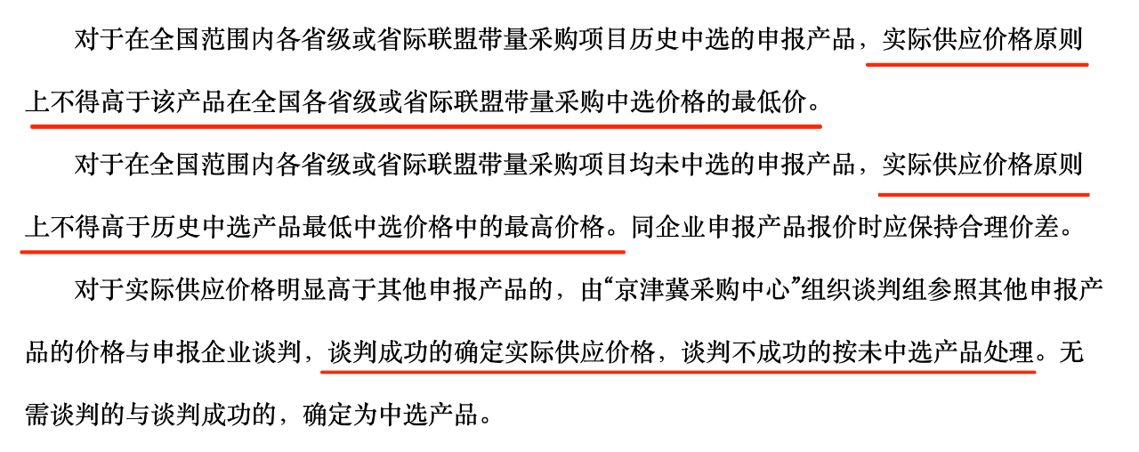 采購周期內(nèi),中選企業(yè)的非中選產(chǎn)品按不高于本項(xiàng)目該企業(yè)同品種最高中選價(jià)格掛網(wǎng)的,且不高于其在其他省級或省際聯(lián)盟帶量采購中選價(jià)格的,可視為中選產(chǎn)品;未中選企業(yè)的產(chǎn)品按不高于本項(xiàng)目同品種最高中選價(jià)掛網(wǎng)的,在醫(yī)療機(jī)構(gòu)考核時不視為非中選產(chǎn)品。