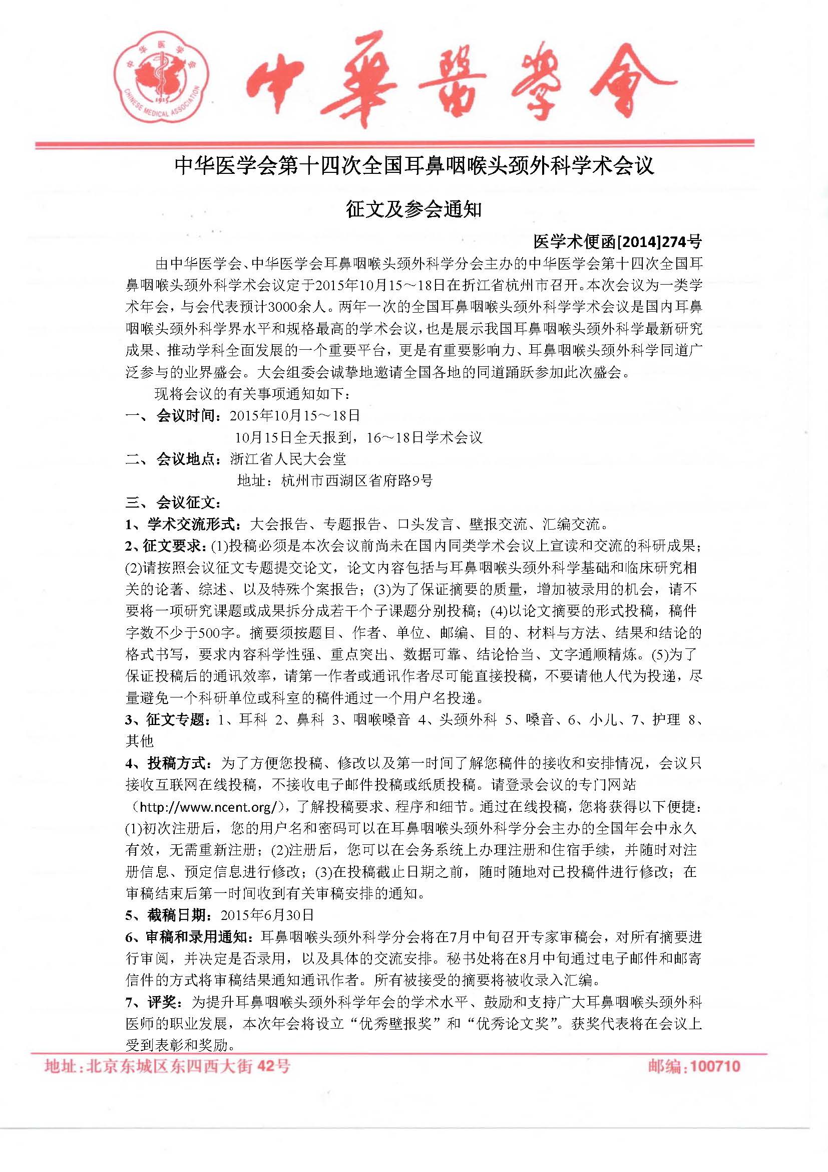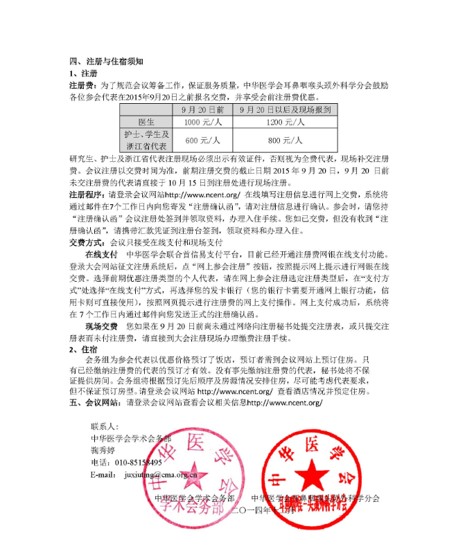 NCENT2015大會(huì)秘書處 中華醫(yī)學(xué)會(huì)學(xué)術(shù)會(huì)務(wù)部