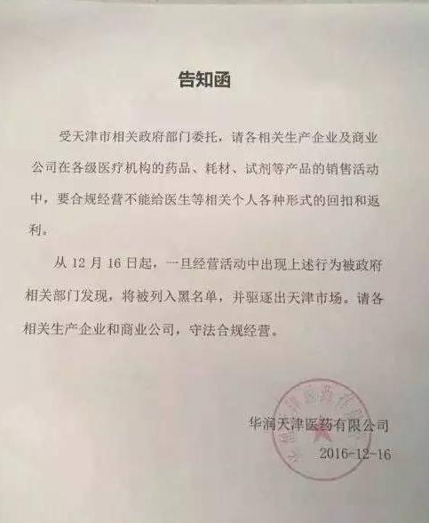 12月16日,華潤天津醫(yī)藥有限公司和國藥控股天津有限公司,同時發(fā)出以下通知: