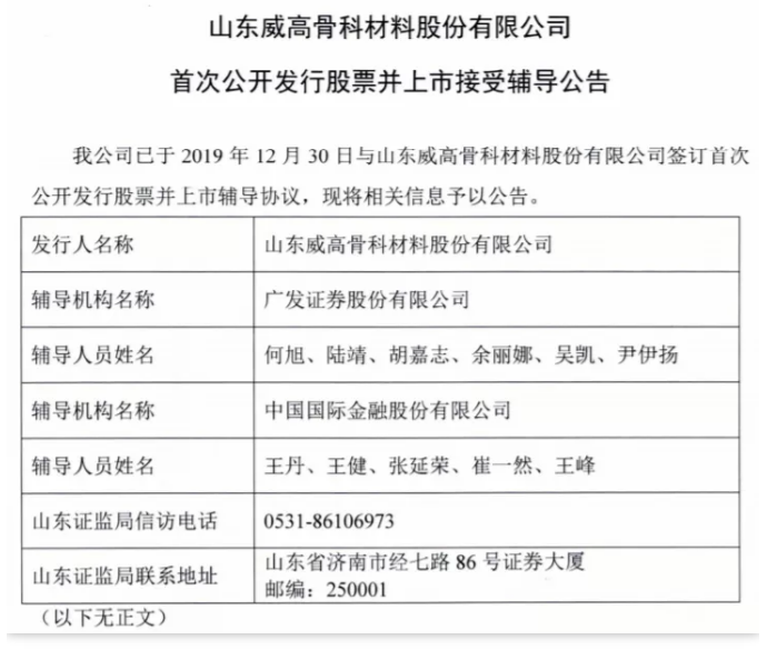早在2019年12月30日,威高股份就發(fā)布公告稱(chēng),內(nèi)幕消息建議分拆威高骨科,并于中國(guó)一間證券交易所上市。當(dāng)日,威高骨科財(cái)務(wù)顧問(wèn)就申請(qǐng)有關(guān)建議分拆上市之上市前輔導(dǎo)過(guò)程向中國(guó)證券監(jiān)督管理委員會(huì)山東監(jiān)管局提交申請(qǐng)。
