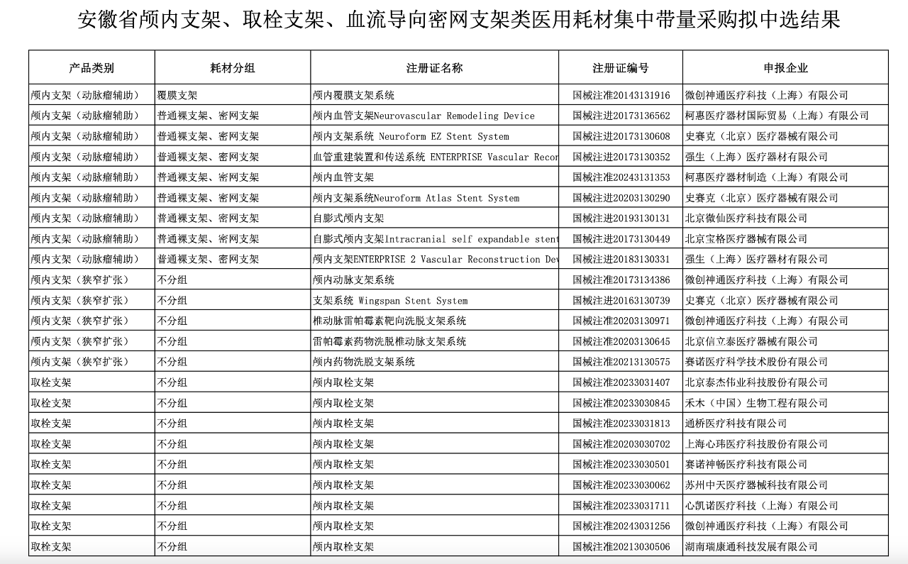 安徽神經(jīng)介入集采擬中選結(jié)果出爐