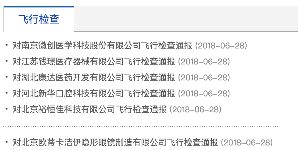 繼5月份國家藥品監(jiān)督管理局對(duì)一批械企飛檢后,6月份,國家藥監(jiān)局再出手,飛檢了6家械企,大有“每月一飛檢”的節(jié)奏。