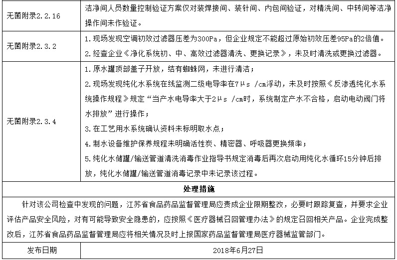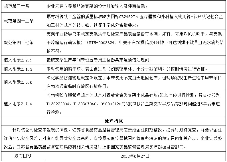 通報(bào)顯示,6家企業(yè)分別位于江蘇、湖北、河北、北京等省市,其中3家處于停產(chǎn)狀態(tài),另外3家發(fā)現(xiàn)多處一般缺陷,被要求限期整改,這其中包括南京微創(chuàng)。