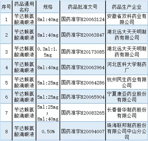 附:芐達(dá)賴氨酸滴眼液品種名單