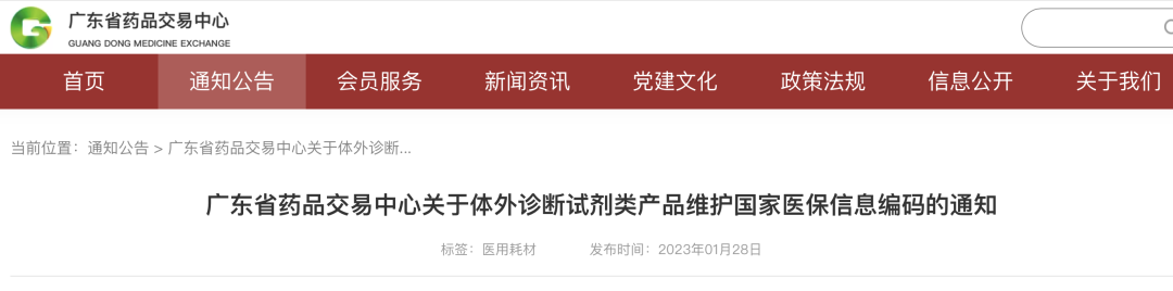 2023年1月28日,廣東省藥品交易中心發(fā)布《關于體外診斷試劑類產(chǎn)品維護國家醫(yī)保信息編碼的通知》(以下簡稱《通知》),要求體外診斷試劑生產(chǎn)、經(jīng)營企業(yè)開展體外診斷試劑類相關產(chǎn)品醫(yī)保編碼信息維護工作。