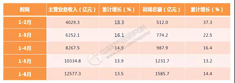 據(jù)中商產(chǎn)業(yè)研究院披露的數(shù)據(jù)顯示,2018年1-6月實現(xiàn)主營業(yè)務(wù)收入12,577.3億元,利潤總額1,585.7億元;增長率分別為13.5%和14.4%。