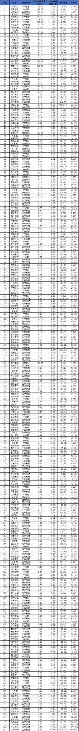 附:281家藥企營收、凈利潤數(shù)據(jù)榜單