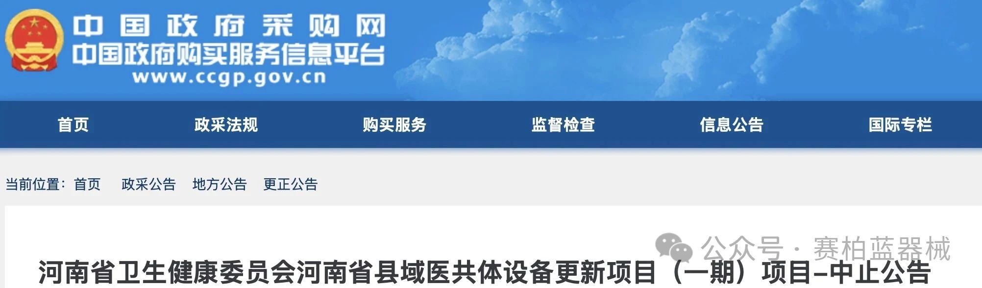 近日,中國政府采購網(wǎng)發(fā)布《河南省衛(wèi)生健康委員會河南省縣域醫(yī)共體設(shè)備更新項目(一期)項目-中止公告》(簡稱《公告》)。