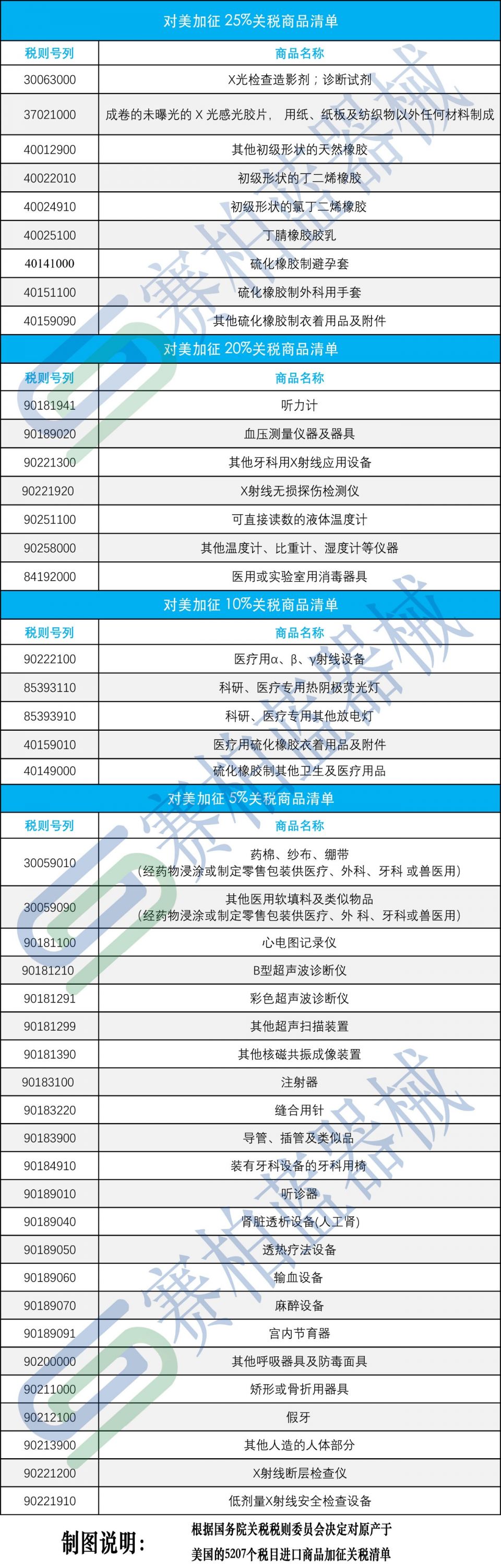 具體來看,加征25%關(guān)稅的商品共2493個,涉及醫(yī)療器械的有X光檢查造影劑;診斷試劑,以及X光感光膠片、外科用手套等耗材;