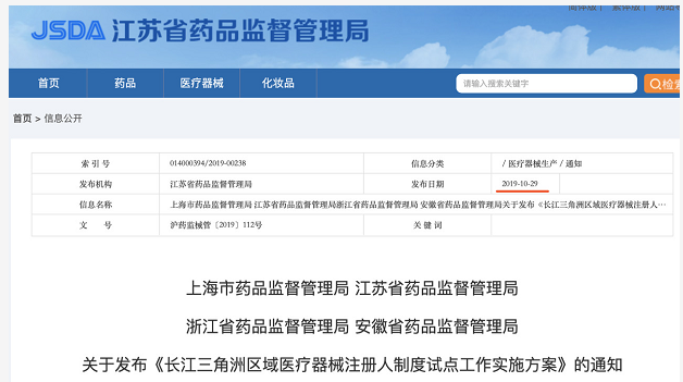 今日(9月29日),據(jù)江蘇省藥品監(jiān)督管理局消息,上海、江蘇、浙江、安徽四地藥監(jiān)局聯(lián)合發(fā)布《長江三角洲區(qū)域醫(yī)療器械注冊人制度試點(diǎn)工作實(shí)施方案》。