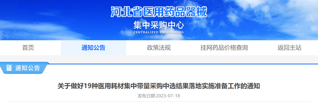 7月18日,河北省醫(yī)用藥品器械集中采購(gòu)中心發(fā)布《關(guān)于做好19種醫(yī)用耗材集中帶量采購(gòu)中選結(jié)果落地實(shí)施準(zhǔn)備工作的通知》(簡(jiǎn)稱《通知》)。