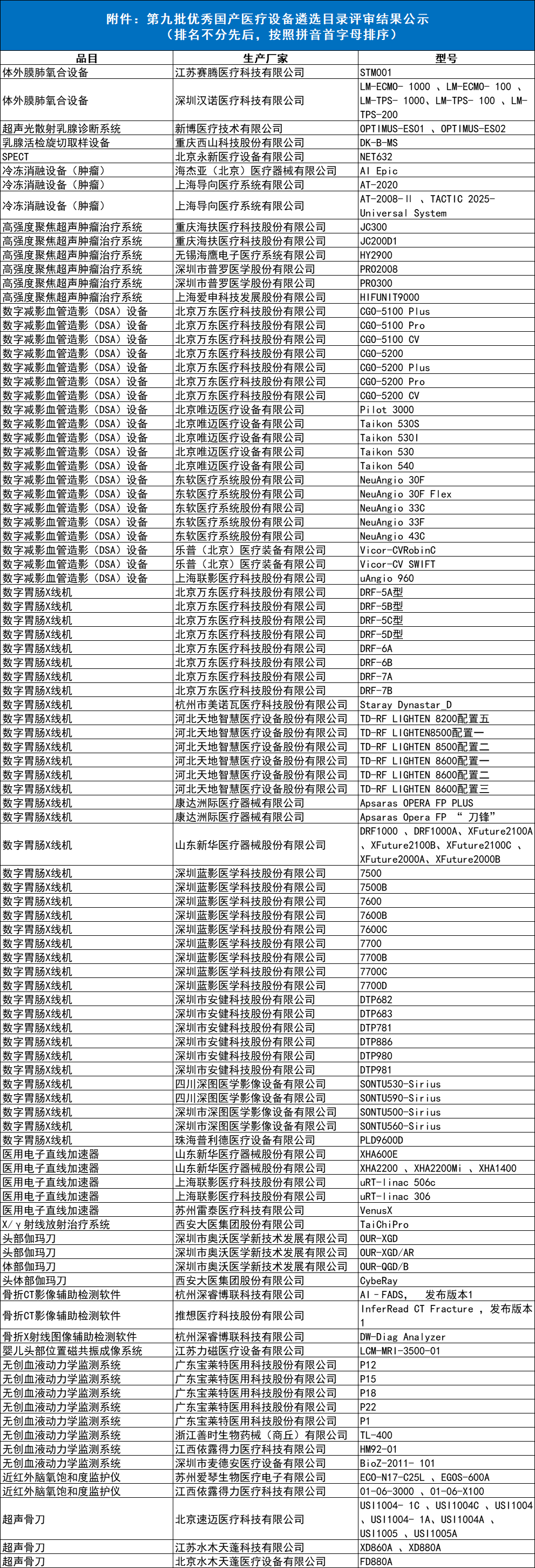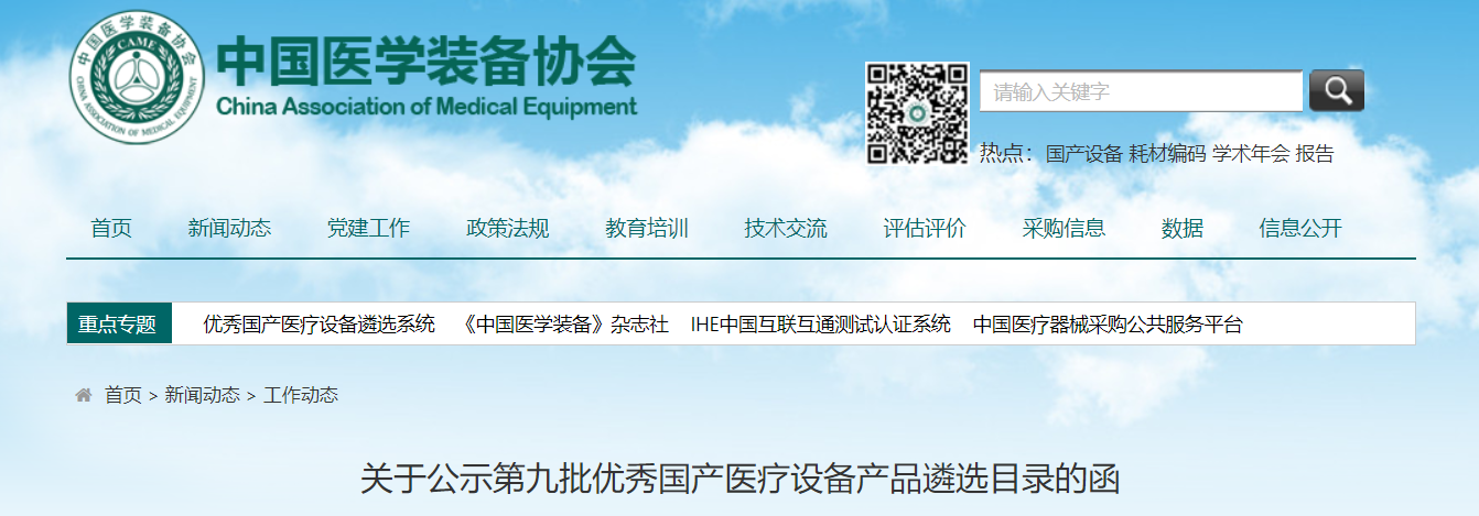 近日,中國醫(yī)學裝備協(xié)會發(fā)布了《關于公示第九批優(yōu)秀國產醫(yī)療設備產品遴選目錄的函》,針對51種醫(yī)療設備,遴選出125家醫(yī)療器械企業(yè),422個產品,進入第九批優(yōu)秀國產醫(yī)療設備產品遴選目錄。