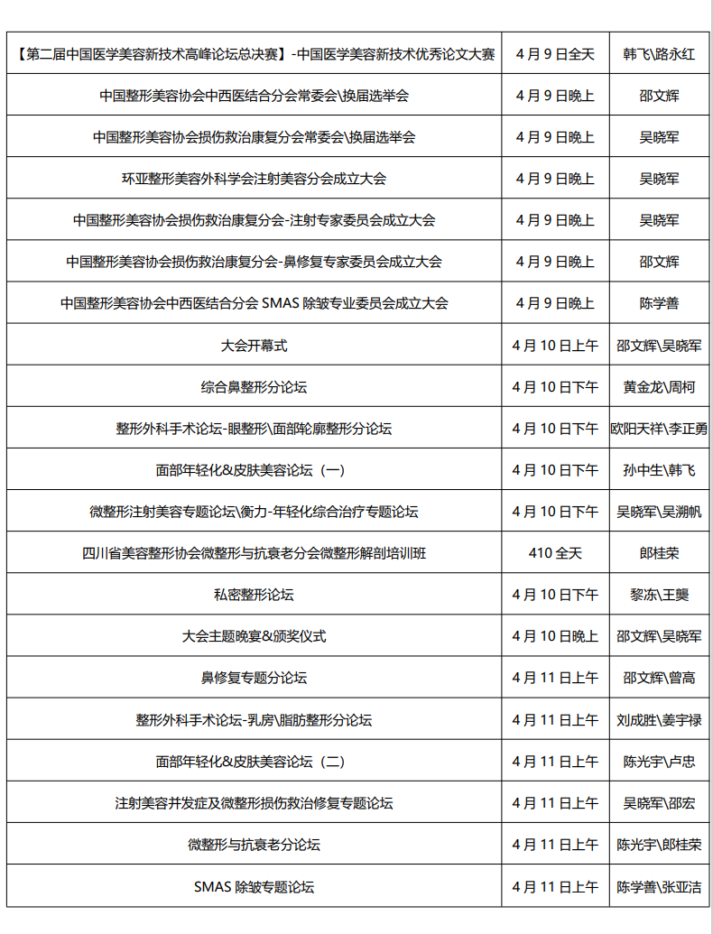 中國醫(yī)學(xué)美容新潮流,傳播中國醫(yī)學(xué)美容新理念,展示了中國醫(yī)學(xué)美容新技術(shù)的發(fā)展趨勢,并促進了相關(guān)成果的交流和推廣。為持續(xù)推動中國醫(yī)學(xué)美容的發(fā)展與繁榮,2021第二屆中國醫(yī)學(xué)美容新技術(shù)高峰論壇、2021中國整形美容協(xié)會中西醫(yī)結(jié)合分會西南專委會學(xué)術(shù)年會、四川省美容整形協(xié)會面部整形與修復(fù)再生分會學(xué)術(shù)年會擬于2021年4月8日至4月11日在中國醫(yī)美之都——成都召開。