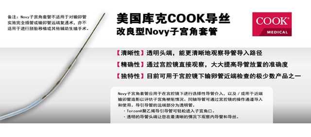 美國(guó)庫(kù)克COOK導(dǎo)絲應(yīng)用于在宮腔鏡下進(jìn)行選擇性導(dǎo)管導(dǎo)入,以及/或用于近端輸卵管造影以評(píng)估子宮角梗阻情況。操作簡(jiǎn)單,安全有效,創(chuàng)傷小、無(wú)傷疤、痛苦小、術(shù)后恢復(fù)快、住院時(shí)間短、并發(fā)癥少。