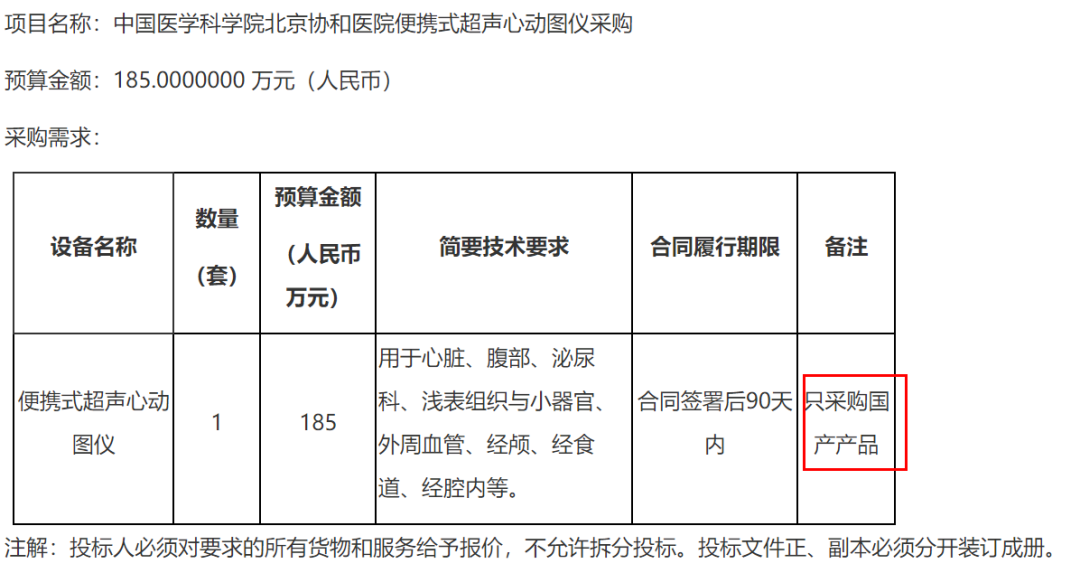 以北京協(xié)和醫(yī)院為例,近年來大批醫(yī)療設備采購訂單,都開始明確只采購國產產品。